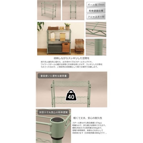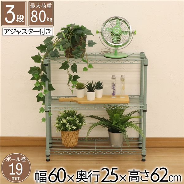 19φスチールラックセット 幅60×奥行25cm 3段 グリーン