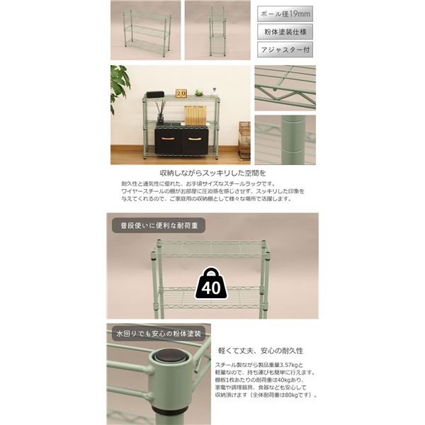 19φスチールラックセット 幅75×奥行25cm 3段 グリーン