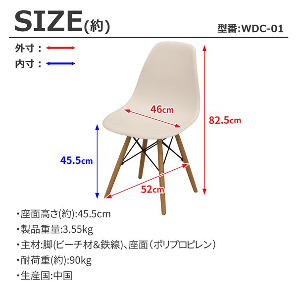 (約)幅46×奥行52×高さ82.5cm、座面高さ:45.5cm