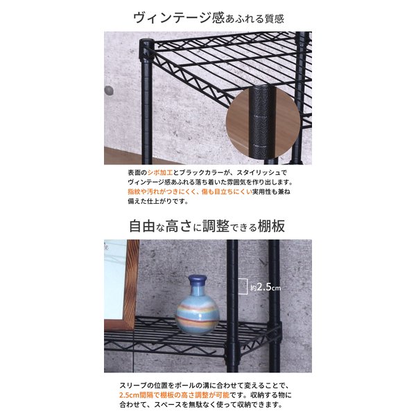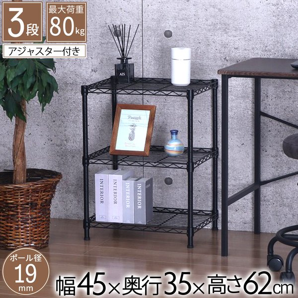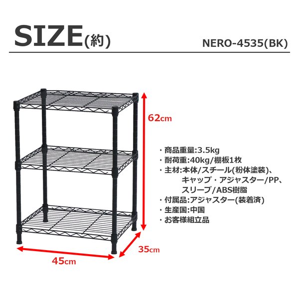 19φ NEROシリーズ スチールラック 幅45cm 奥行35cm 高さ62cm 3段