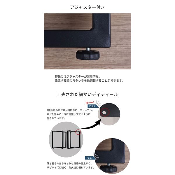 脚先にアジャスターが付属しており、ガタ付きを調整できます。