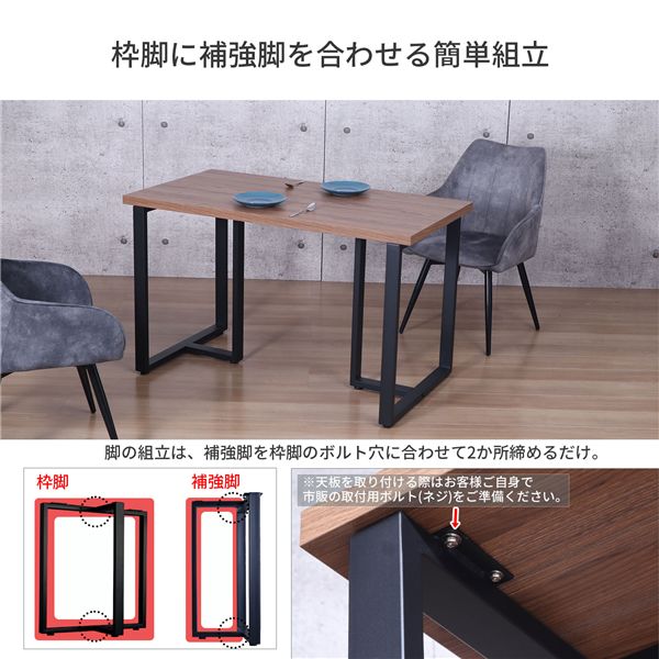 テーブル用天板に取り付けて脚として使用できる、枠脚に補強脚を合わせて組立てるT字型のテーブル脚(2本セット)です。