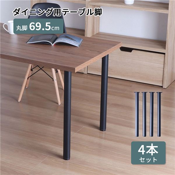 【脚のみ】 ダイニングテーブル用 テーブル丸脚4本セット 高さ69.5cm ブラック【代引不可】