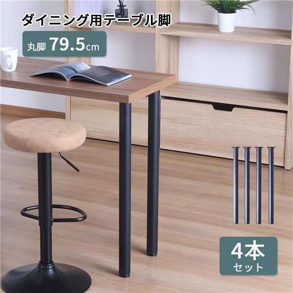 【脚のみ】 ダイニングテーブル用 テーブル丸脚4本セット 高さ79.5cm ブラック【代引不可】