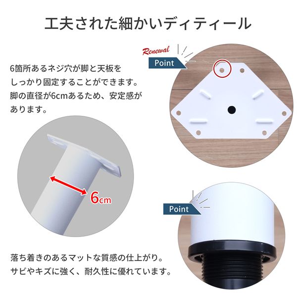 スチール製でしっかりと天板を支えるので、安定感抜群!脚1本につき6本のネジで天板に固定するため、揺れにくく安定した仕上がりが実現。