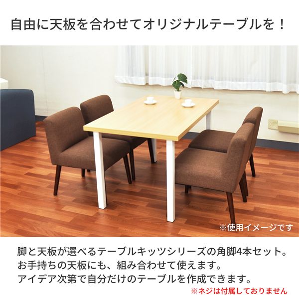 テーブル用天板に取り付けて脚として使用できる、角脚タイプのテーブル脚(4本セット)です。