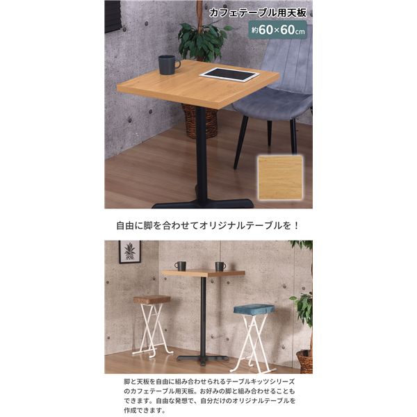 テーブル用脚を取り付けてテーブルとして使用できる、正方形のカフェテーブル向き天板です。