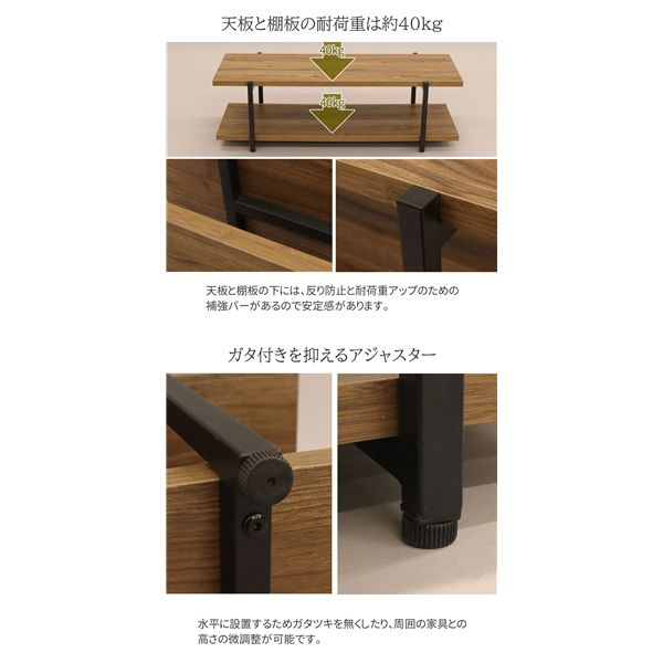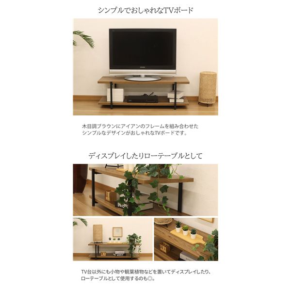 木目の優しい雰囲気が様々なタイプのお部屋に馴染みやすい、落ち着いた木目調天板×スチール脚を使ったTV台です。