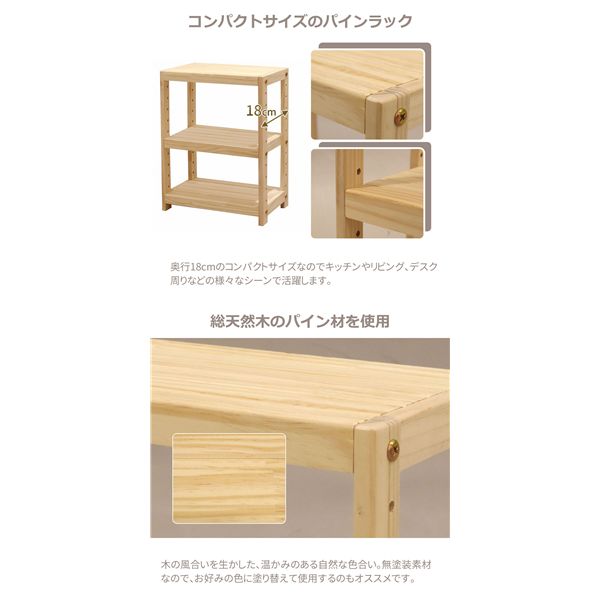 木の風合いを生かした、温かみのある自然な色合いのパインラックです。