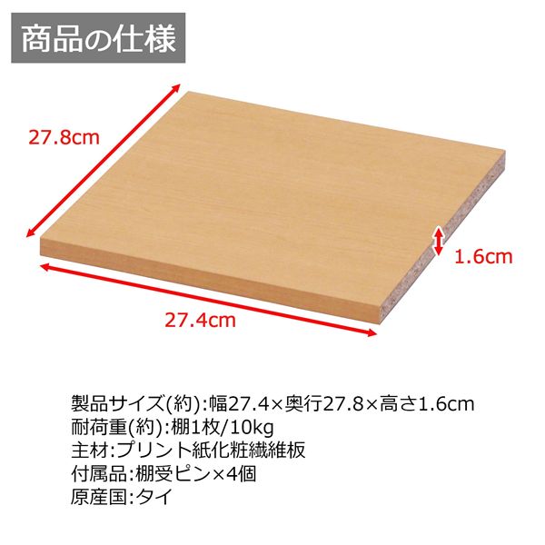 棚板1枚あたり耐荷重約10kg、内寸奥行約28cmなので、コミック単行本などを前後で2列収納することも可能です。
