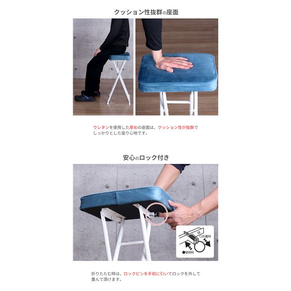 ブルーの座面は、サラッとした肌触りのベロア調の質感です。
