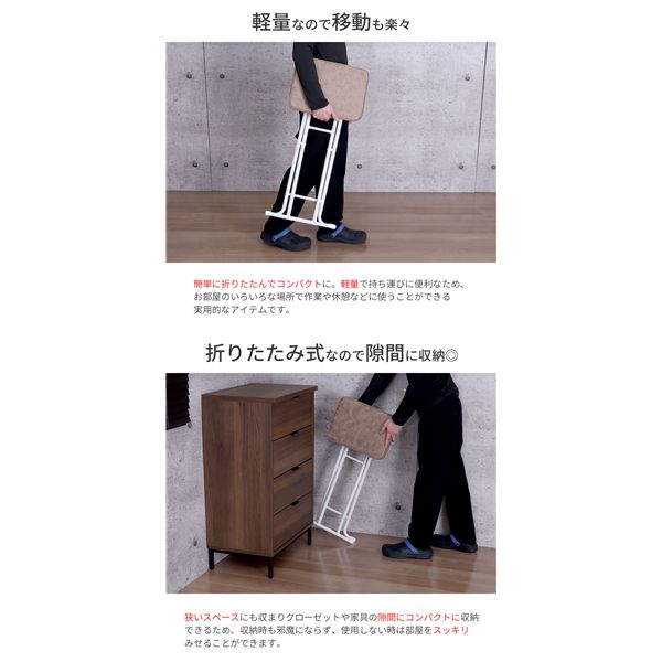 使用しない時は折りたたんで、ちょっとした隙間へコンパクトに収納が可能です。