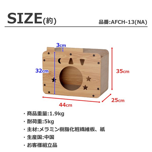 爪とぎをしたり、ベッドのようにくつろいだり、隠れ家のようにリラックスできる場所として最適です。