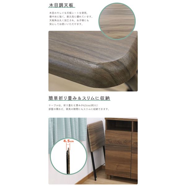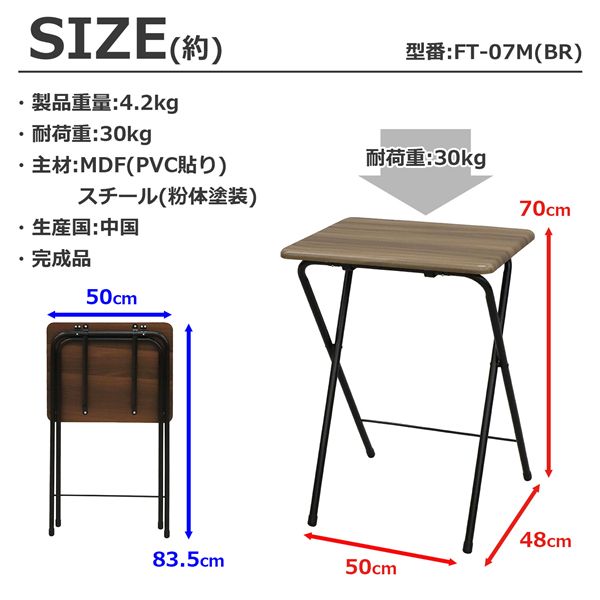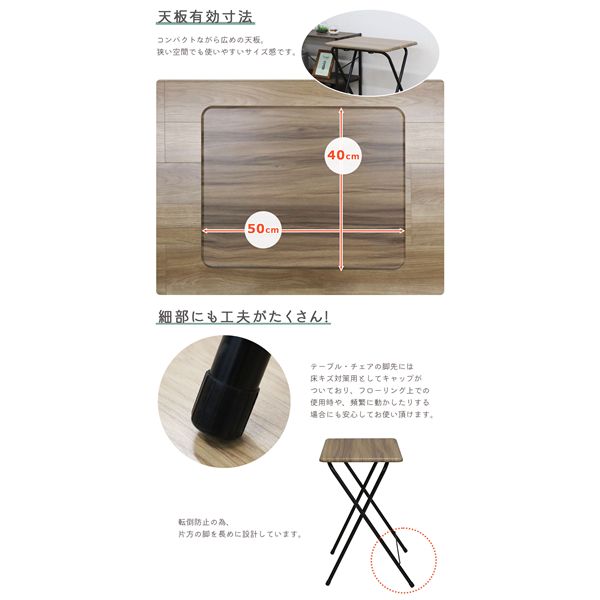 (約幅50×奥行48×高さ70cm、天板幅50× 奥行き40cm、折りたたみ時厚さ(約)4.5cm