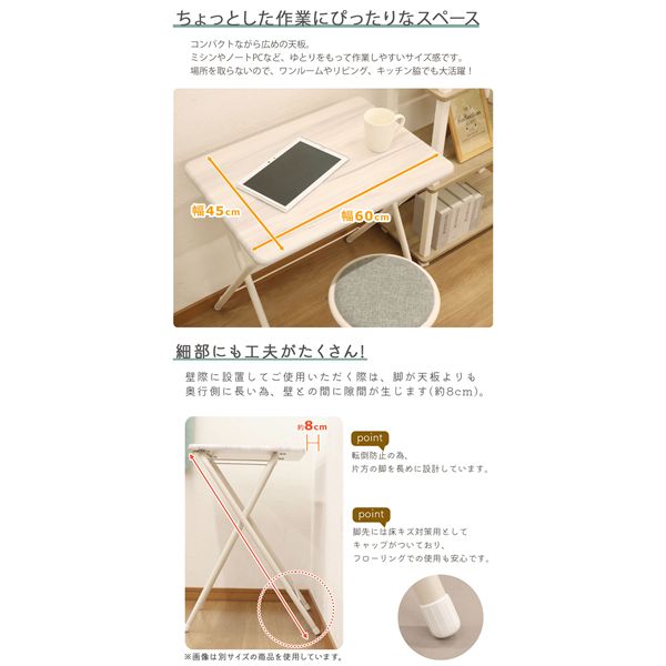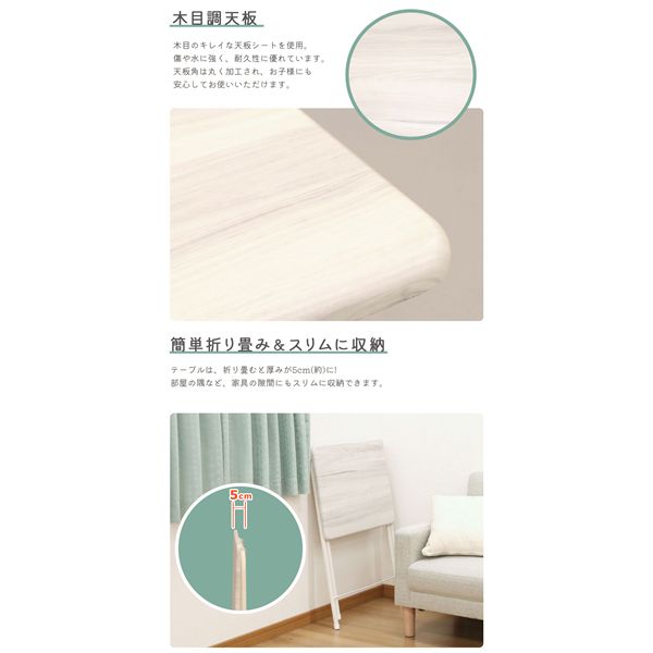 (約幅50×奥行48×高さ70cm、天板幅50× 奥行き40cm、折りたたみ時厚さ(約)4.5cm