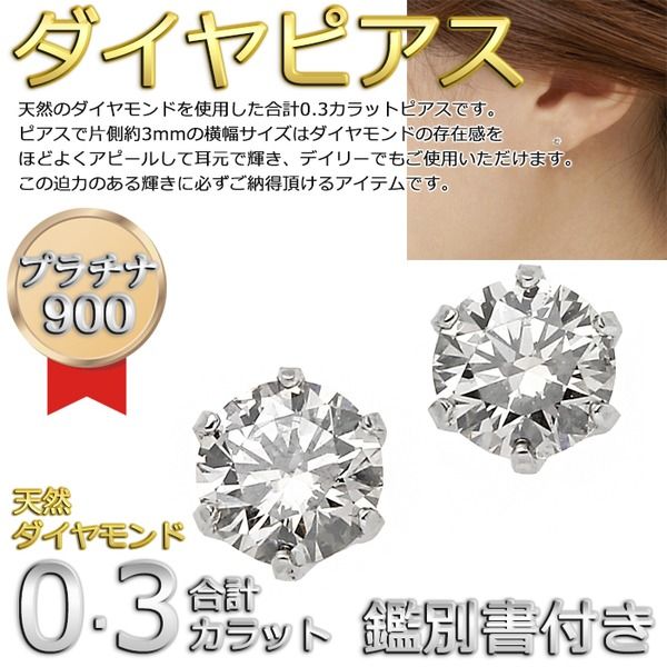 ダイヤモンド ピアス プラチナ Pt900 0.3ct スタッドピアス ダイヤピアス 0.3カラット シンプル