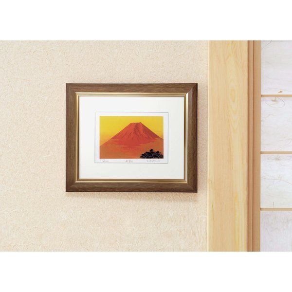 シルク版画 額付き インチサイズ 吉岡浩太郎 「赤富士」 スタンド付き 壁掛け可 箱入り 日本製