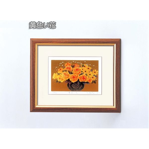花 風水額 シルク版画 〔 吉岡浩太郎 黄色い花 〕 スタンド付き 壁掛け 置き型兼用 日本製 額縁 額 フレーム