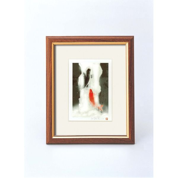 〔 壁掛け 置き型兼用 〕 絵画額 243×293×19〜140mm 吉岡浩太郎 「夫婦滝昇り鯉」 スタンド付き 箱入り 日本製