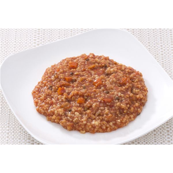 【原材料名】野菜(たまねぎ、にんじん、マッシュルーム)、白米(秋田県産)、トマトピューレ(国