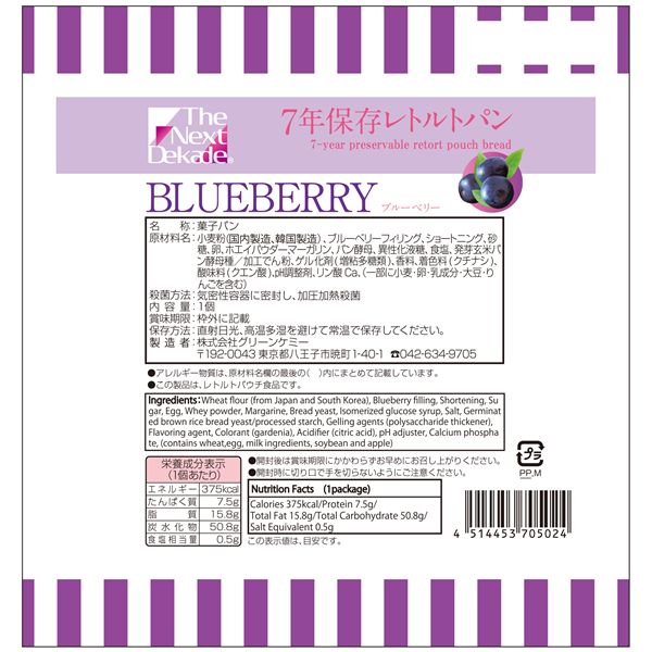 【商品名】The Next Dekade 7年保存レトルトパン ブルーベリー 50袋入り