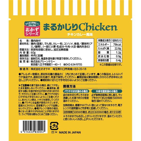 【商品名】長期保存レトルトおかず まるかじりチキン チキンカレー風味