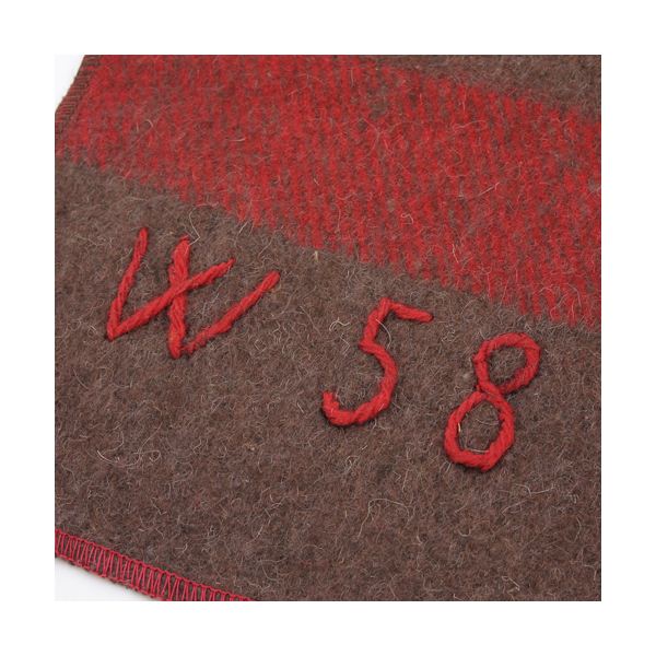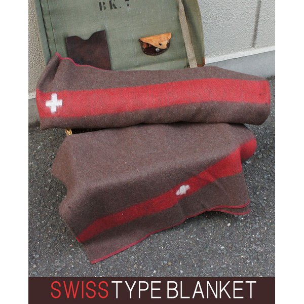ブランのカラー地に上下にレッドのストライブが入り、スイス軍の紋章が白地で、赤字でイニシャルが刺繍され、ミリタリー満点のブランケットです。