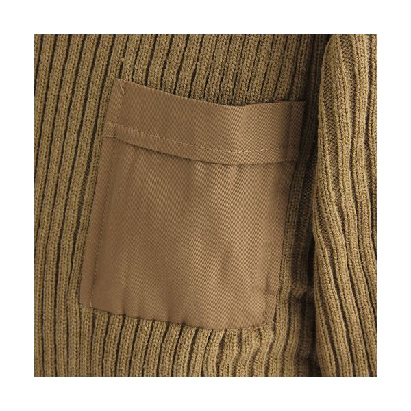 体にほどよくフィットするたまま、風の吹き込みもおさえ、保温性にすぐれています。まさに軍モノならではの機能性が備わっているというわけです。シルエットがすっきりするということは、例えば、ダウンのインナーに着こんでもモコモコしなくてすむということ!こういうニットものはなかなかないから、今回手に入れると、何かと重宝します。