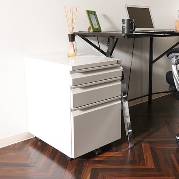 サイドチェスト 袖机 約幅39.5cm 3段 ホワイト ロック機能 キャスター付き スチール インキャビネット ルイン 在宅ワーク【代引不可】