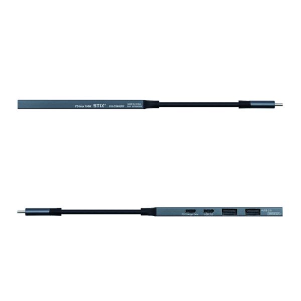 ●薄さ7.4mm、スリム設計で省スペースのPD充電対応アルミボディ[STIX]シリーズ、5ポートハブ。<Type-A(USB3.2 Gen1)+Type-A(USB2.0)x2+Type-C(USB2.0)+Type-C(USB PD充電専用)>
