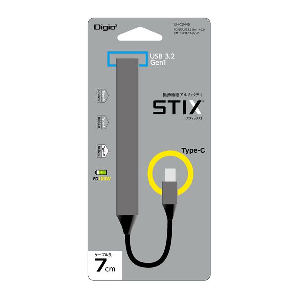 Digio2 Type-C USB3.2Gen1+2.0 5ポートハブ [STIX] UH-C3445GY